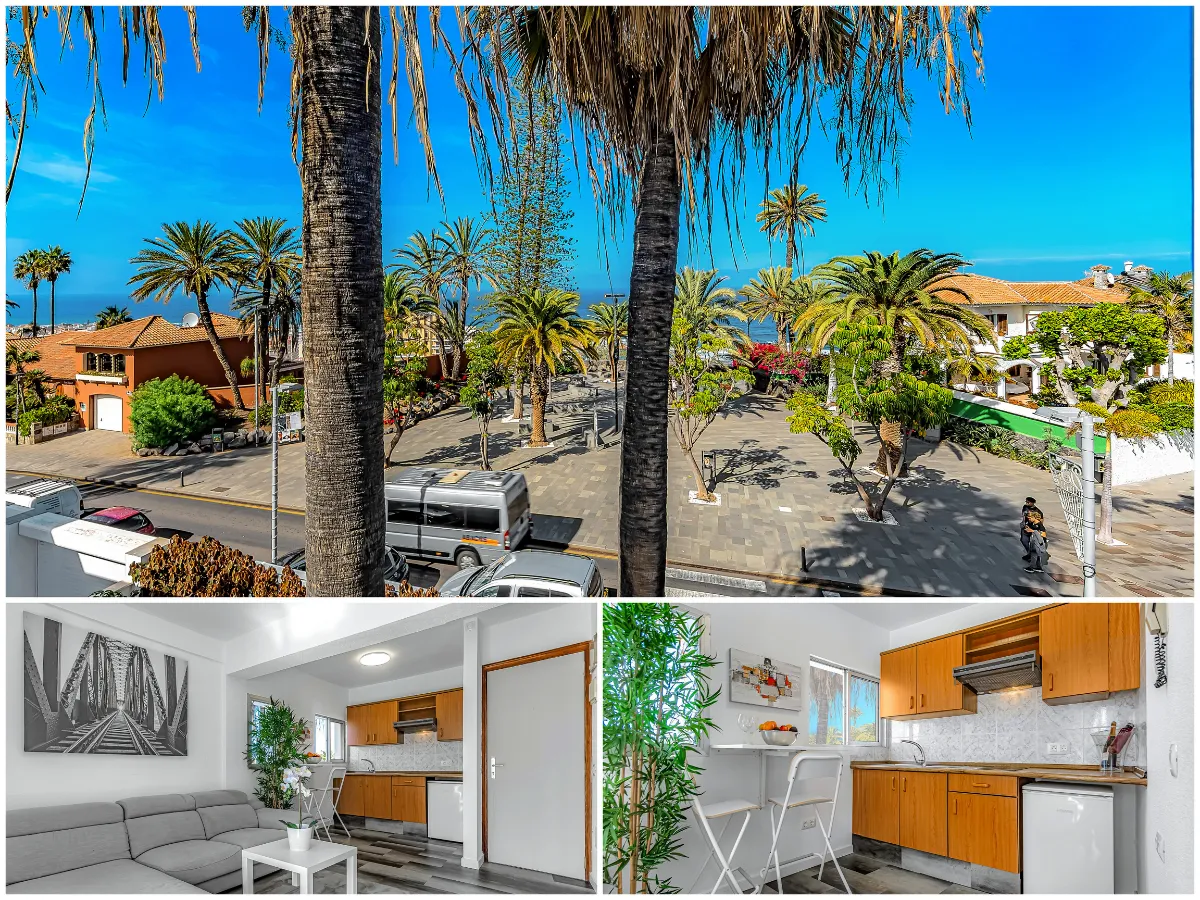 El apartamento cuenta con una terraza con mobiliario exterior y tumbonas para tomar el sol. Aquí podrás relajarte y disfrutar de la brisa marina. Desde la terraza, se puede disfrutar de una vista directa al majestuoso Teide, creando un entorno impresionante y relajante.